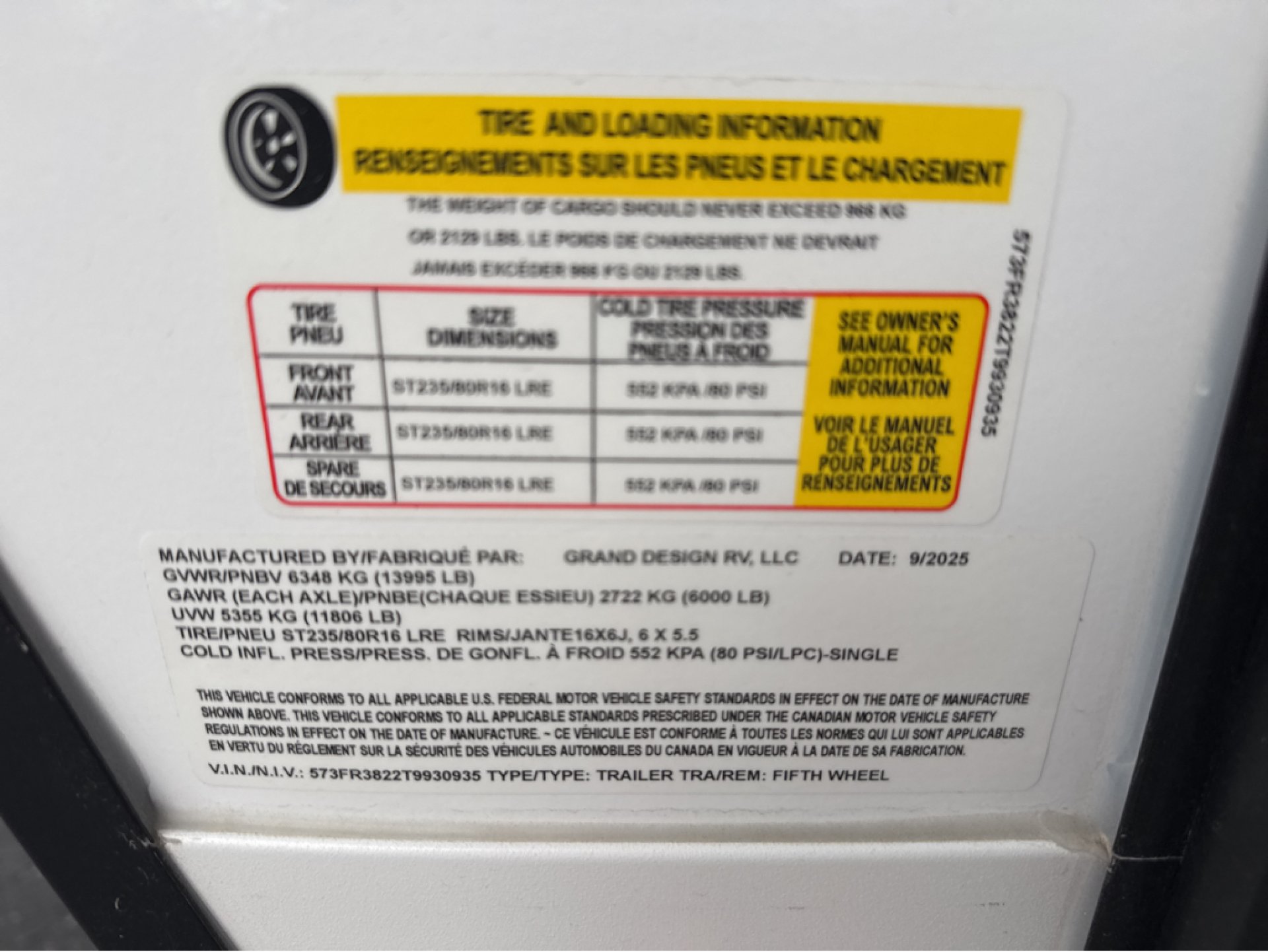 - Gross Vehicle Weight Rating (GVWR) (lbs): 13,995