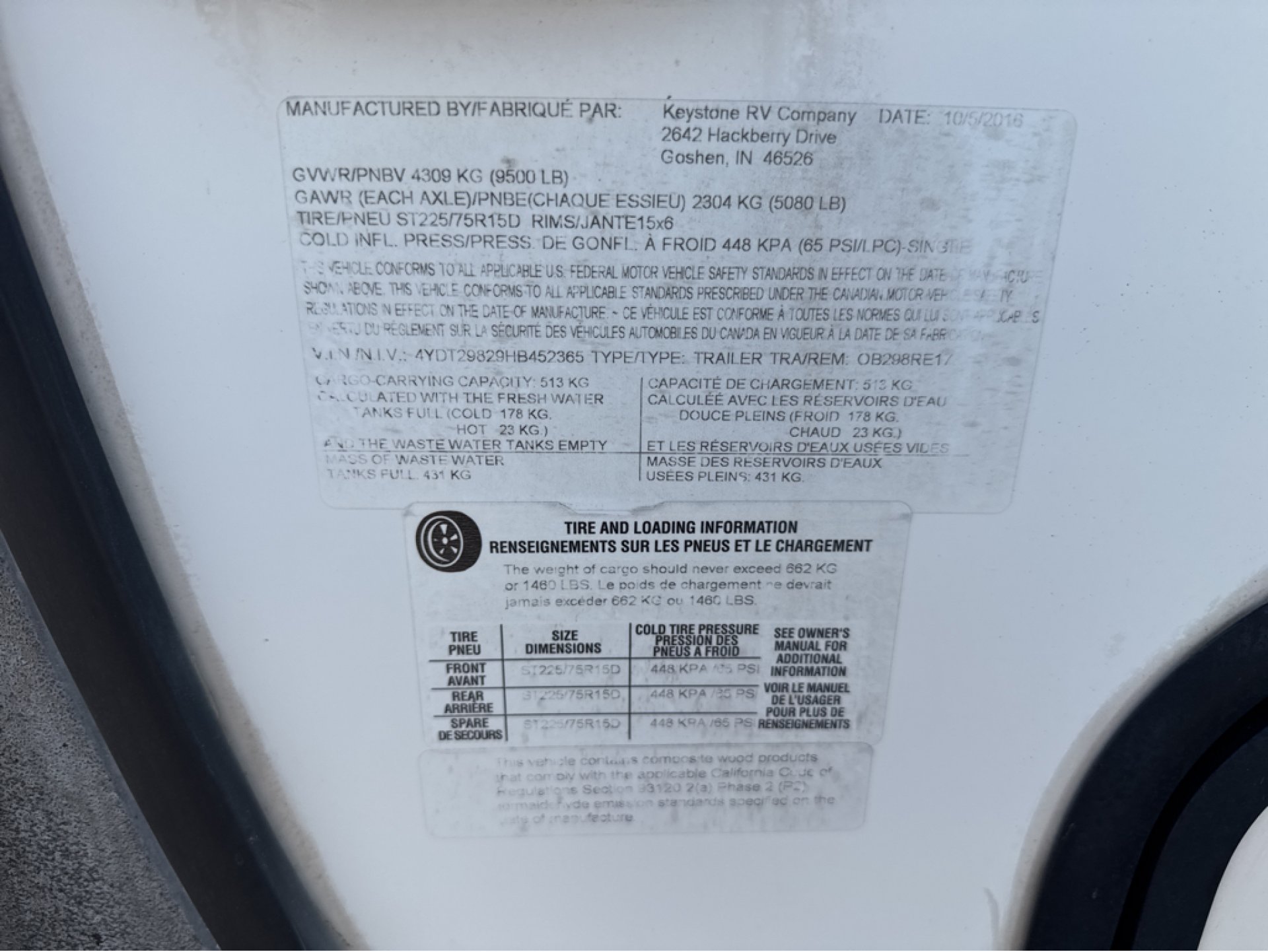 Fresh Water53 gals. Grey Water76 gals.